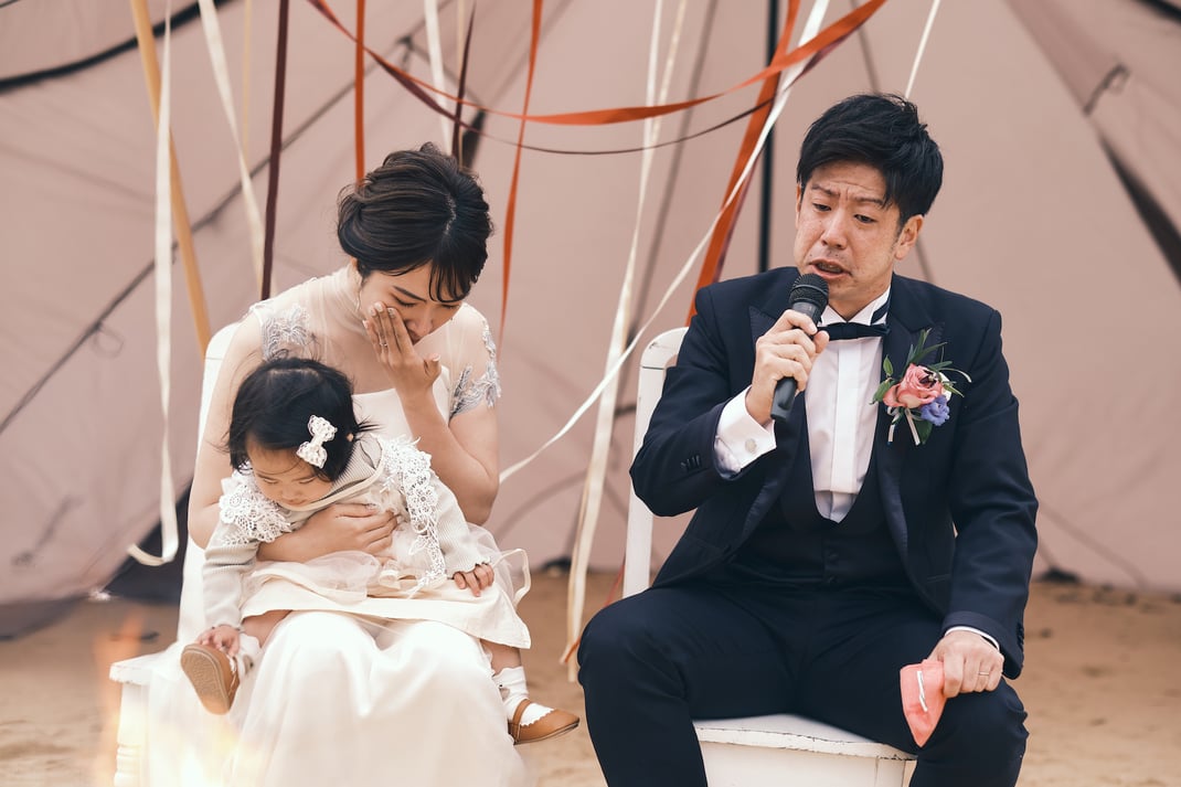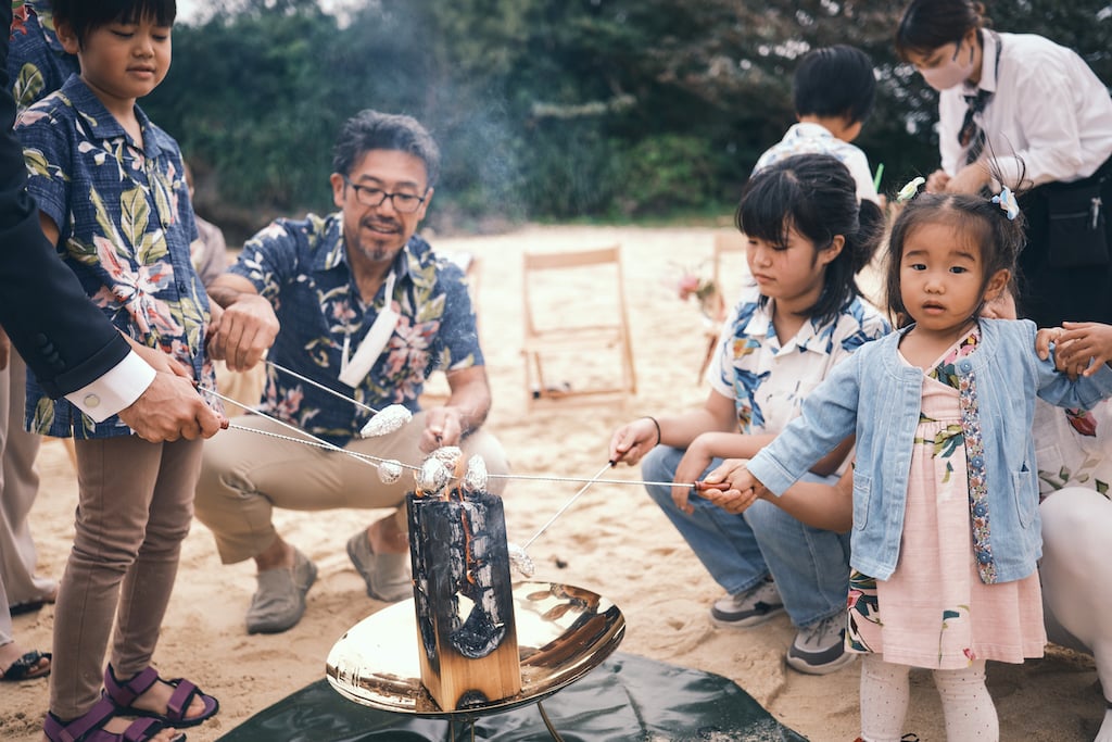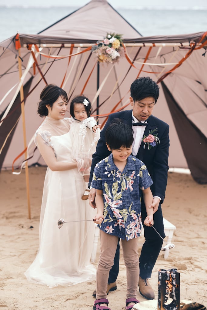 大切な我が子との記憶、子供達は自由に走り、大人は焚き火を囲みのんびりと語り合う・・・。ゲスト皆様の心模様が映し出されたウェディング。
