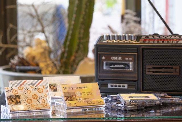 レトロなミュージックや世界観が好きなお二人には、予めカセットテープにゲスト皆様へ向けた感謝の想いを声で綴っていただきました。